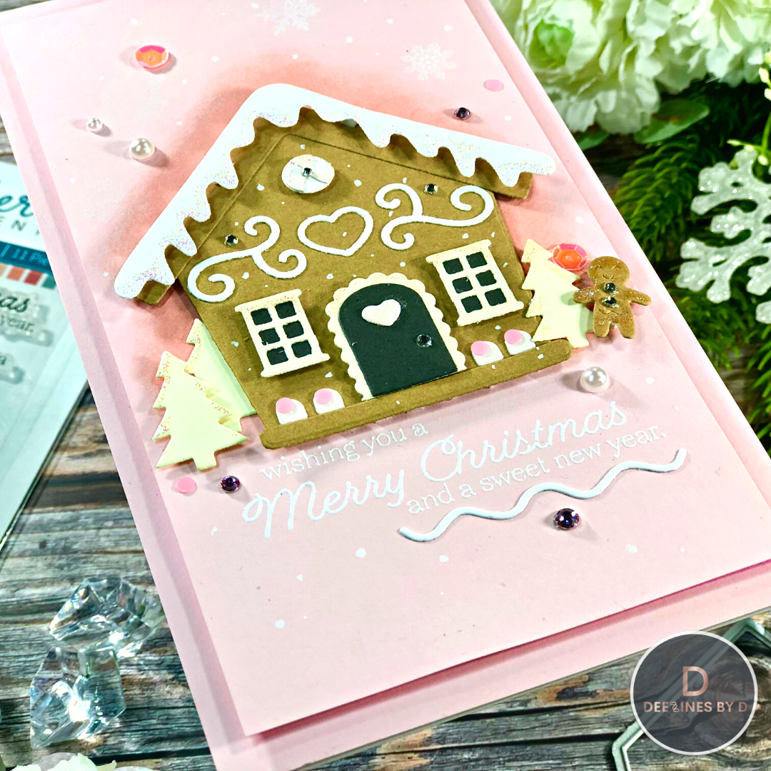 Do you just make Christmas cards at the end of the year or are you, what I like to call, a "year-rounder" like myself? I have another holiday card to share today but I'm pretty sure I'll still be Christmas cardmaking into January 😁. Either way it's always great to get a jump start on next years cards. Today I'm sharing this pink-themed gingerbread house using products from The Maker's Movement.