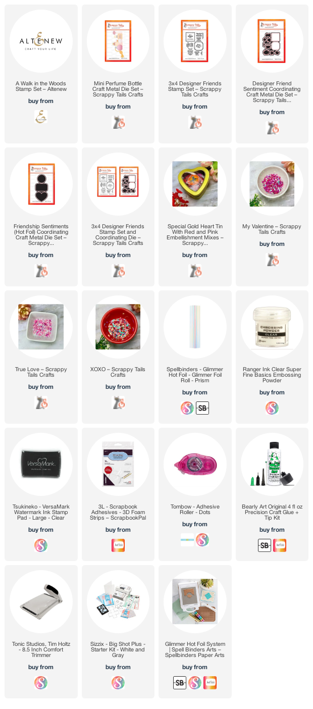 Finally, Scrappy Tails has come out with a bunch of new embellishments packs in reds, pinks, whites, golds and silver. I love the selection and variety of bequins, gems and pearls you get in just one pack. To get a nice mix for all of your Valentines/Galentines projects, they also have a cute heart shaped tin you can get with 6 different packs inside. And they also have a deal where if you buy 5 packs, you get the 6th free + the tin!