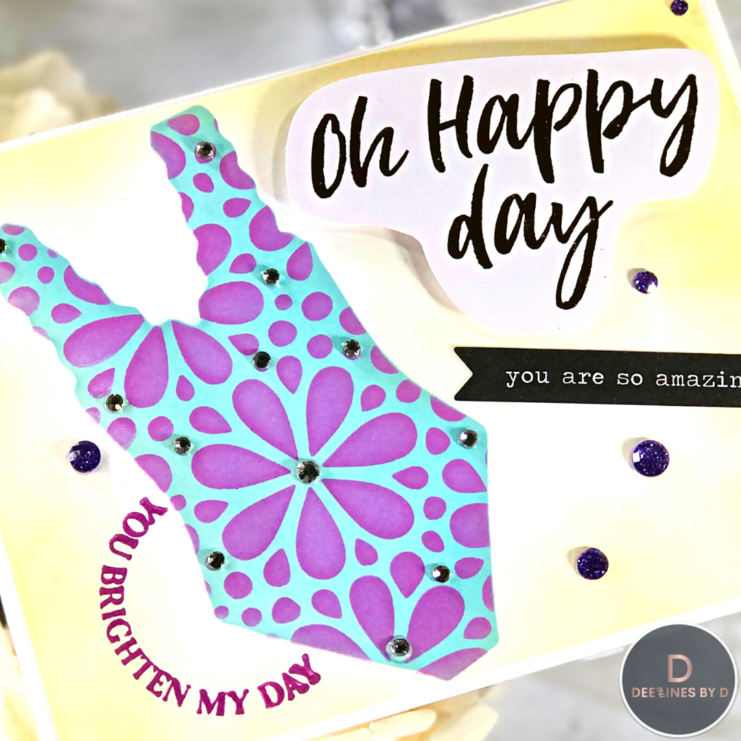 Here's some more inspo with the Marvelous Masks Bathing Suit & Party Lei stencils released by A Colorful Life Designs! (Use code DeepaFan10 for a discount!) These stencils work perfectly together to get a nice print going on that bathing suit! I opted to make another encouragement card that is just full of cheer and supportive words! Stay tuned for more inspo with the release throughout the month. I also have a reel which shows this and the rest of the cards I made for this release linked below for you.